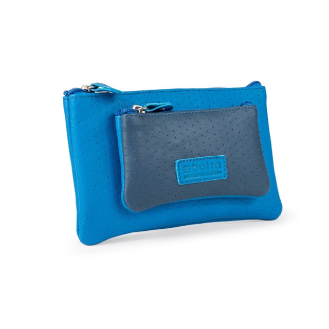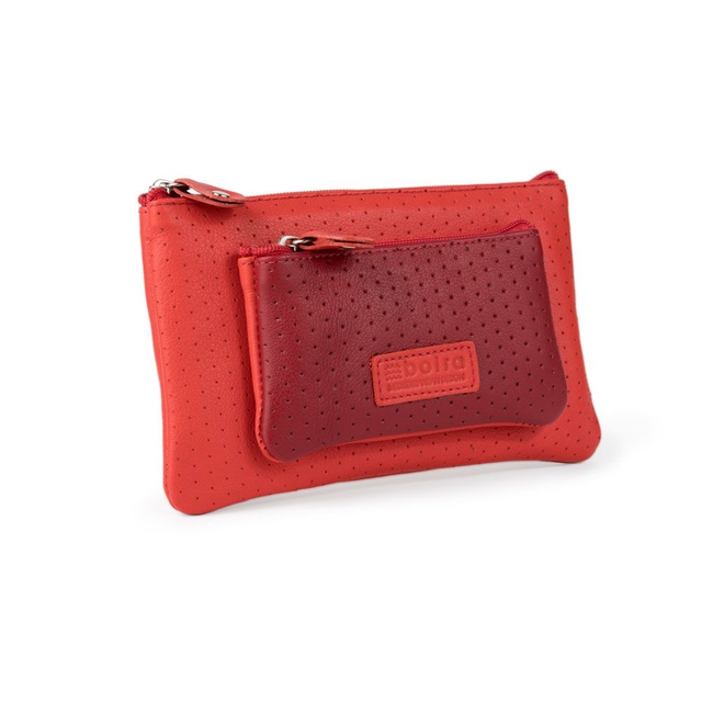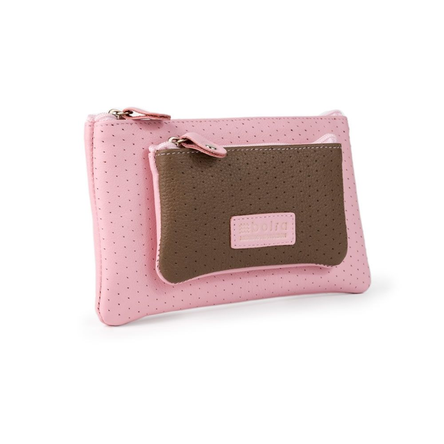 - Bolso duplo para moedas com zíper e puxadores de couro