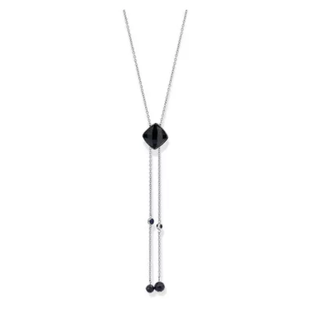 Colar Victoria prateado com pedra preta