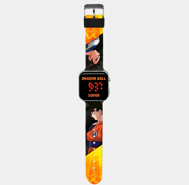 Relógio com revestimento em alumínio e bracelete em plástico, medida ajustável.