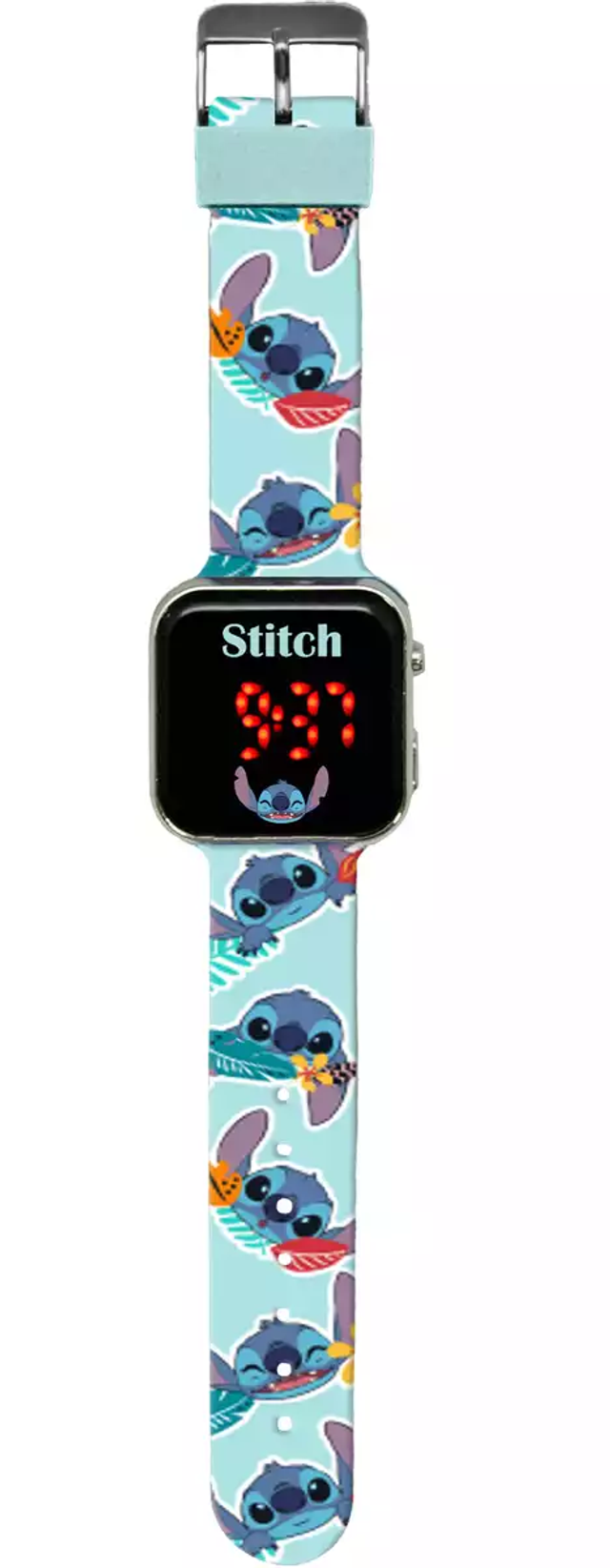 Relógio com revestimento em alumínio e bracelete em plástico, medida ajustável.